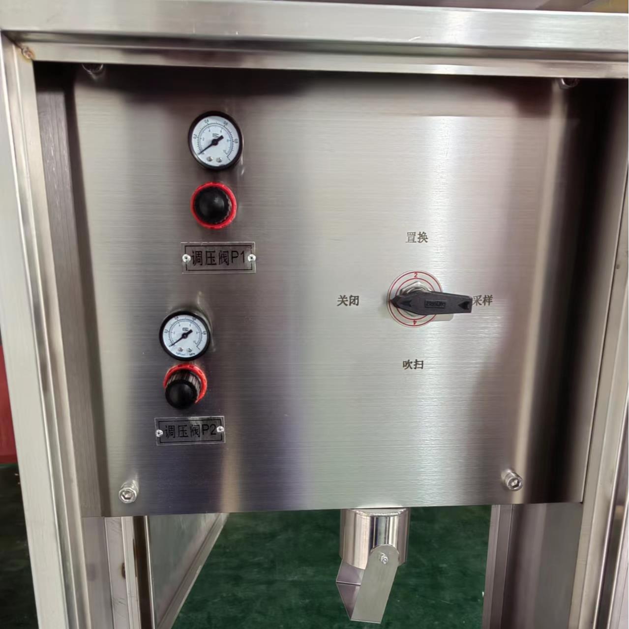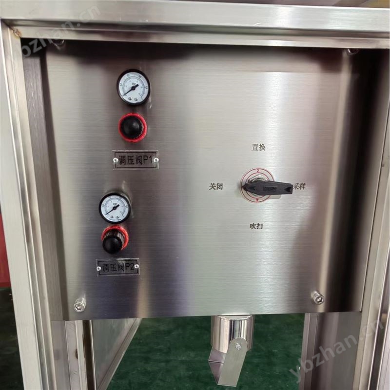 4、待壓力表指示穩定後,轉動四通閥手柄至"置換"位置,置換2分鍾,然後轉動聯動閥手柄至"取樣"位置,開始取樣。