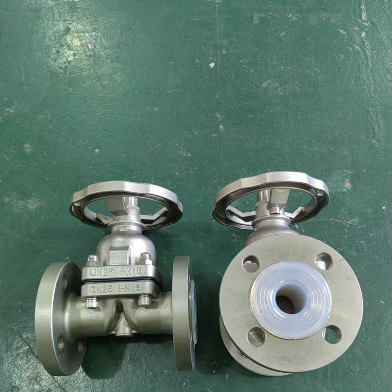 手動襯PFA隔膜閥型号G41PFA,品牌上海栗垣,産品規格DN15-100,壓力等級PN16,閥體材質304不鏽鋼襯PFA,閥芯膜片材質EPDM+PFA,産品耐溫180℃,适用介質:腐蝕性介質,主要用于化工、制藥、半導體行業
